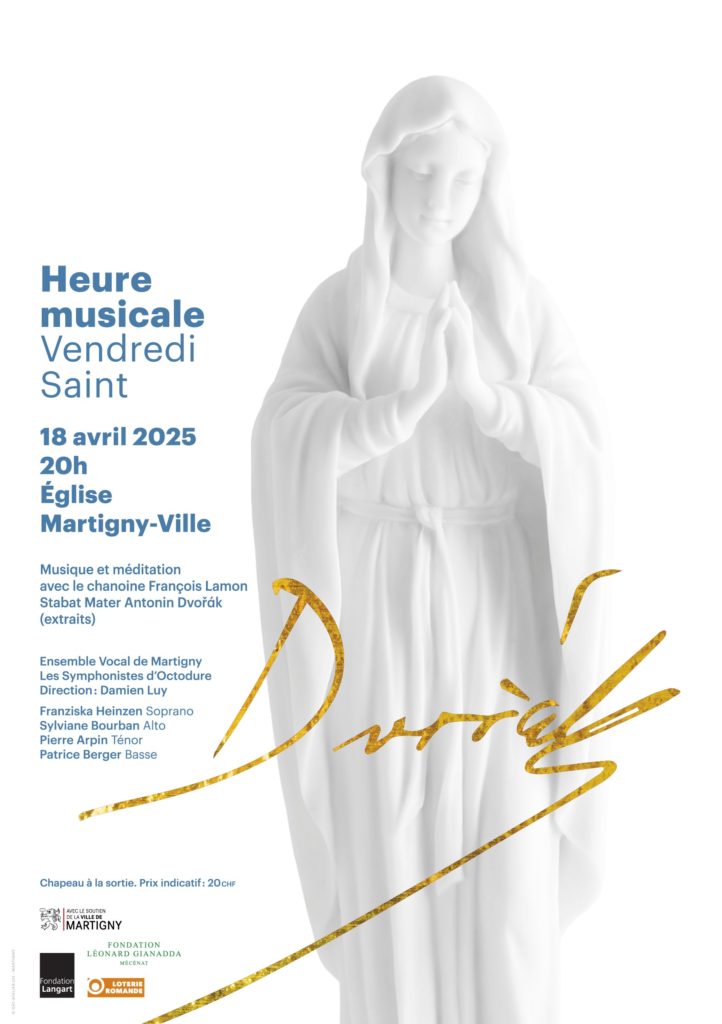 Dans le contexte du Vendredi Saint (18 avril), jour de la Passion et de la mort du Christ, la paroisse avec l’Ensemble vocal de Martigny et les Symphonistes d’Octodure proposent une Heure musicale avec des interventions en écho du chanoine François Lamon.